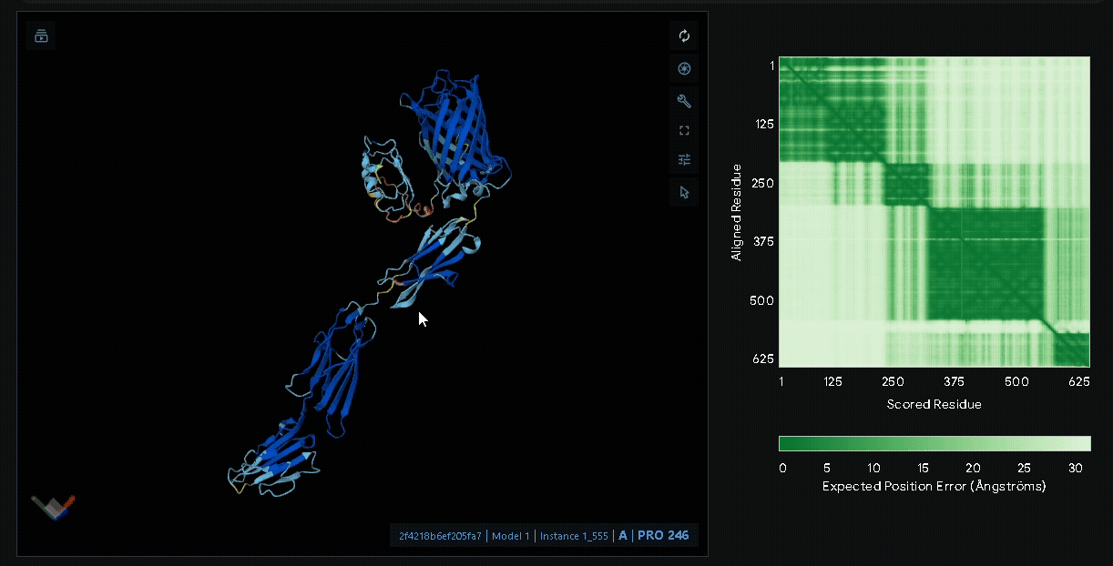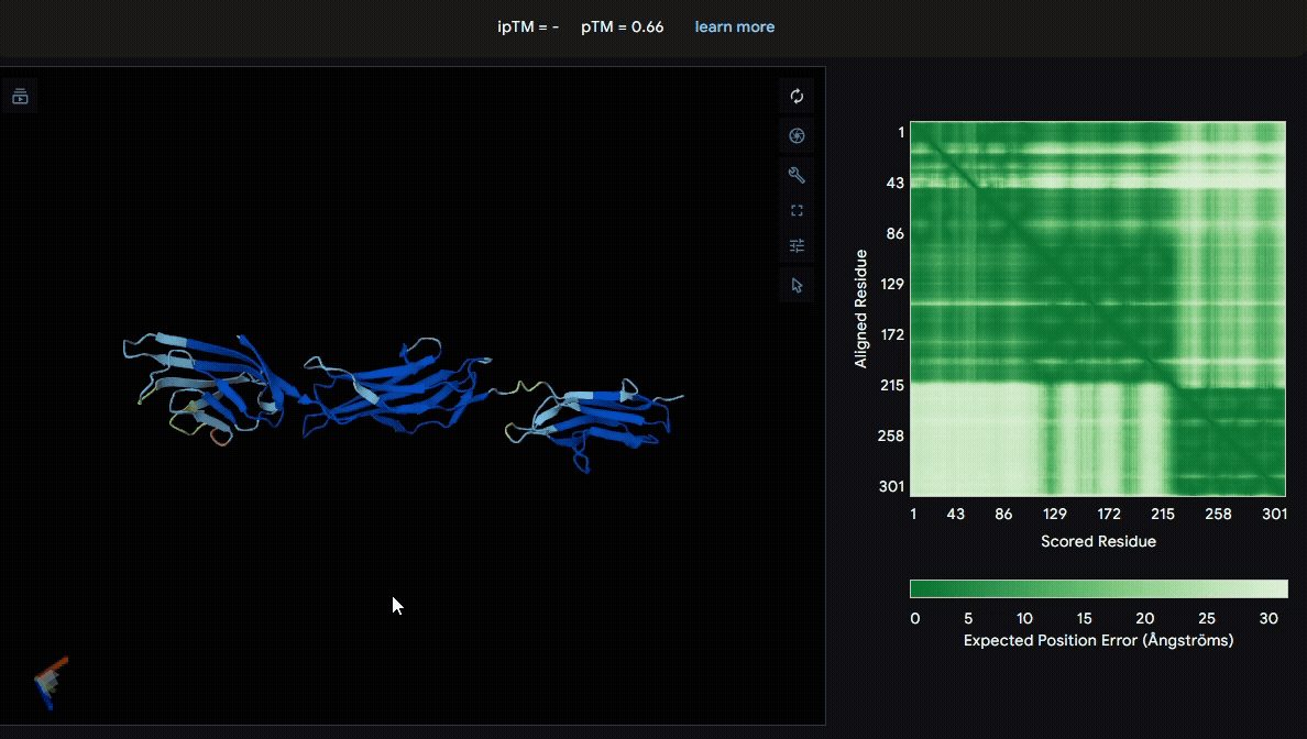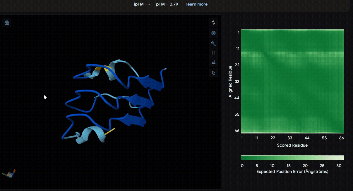 - <50 (orange–red): Very low confidence; often indicates intrinsically disordered regions where AlphaFold cannot provide an accurate prediction.