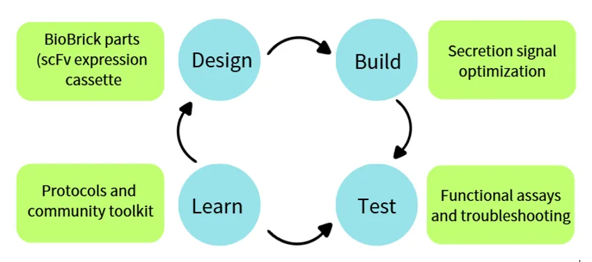 Figure1:wet lab: Design-Build-Test-Learn Cycle and iGEM Contribution