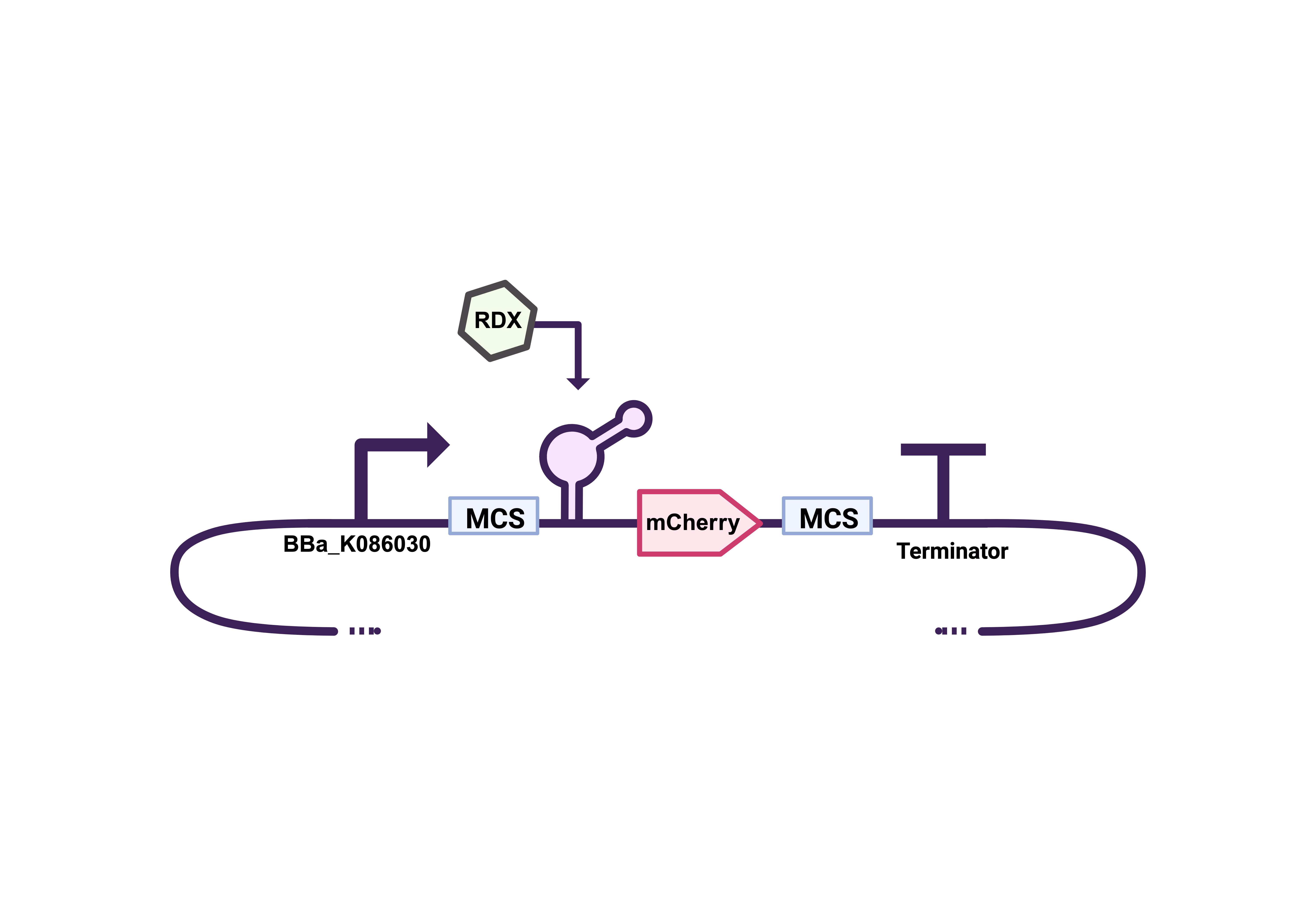 After consolidating our device, we realized that the hmp/hcp fusion promoter lacked the necessary regulatory regions for proper RDX detection, and our search for other RDX-inducible promoters did not identify any viable alternatives. To ensure stable and predictable expression, we chose the constitutive promoter J23119 from the Anderson family, which has been extensively characterized across different cellular contexts. To provide regulation, we incorporated a riboswitch-based biosensor of RDX, capable of detecting RDX at concentrations as low as 0.44 μmol/L [3]. The concept of incorporating a riboswitch had been suggested by the 2022 RUM-UPRM team, but it was never implemented.